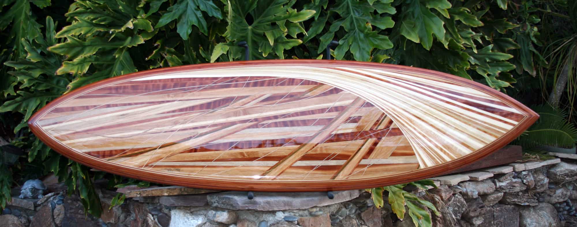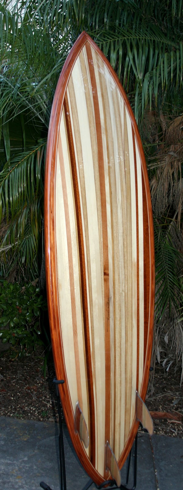 And since I never use paint or tinted stain on my wood surfboards, I realized the client’s desire for bold double helices of D.N.A. would be better expressed by a painter.